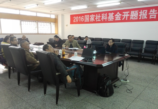 魏强副教授。柳海涛副教授、董玲副教授、蒋楼博士、石佳博士、陈权博士以及多位研究生参加了开题报告会。会议由社科联副主席阳奎兴主持。