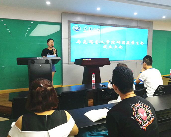 学生会主席张国茹布置学生会近期的重点工作,首先是建立良好的规章制度,其次是要积极创新开展各项活动,三是开展与外院各学生组织的交流活动,四是定期学习研讨。2017级研究生杨蕾同学代表新进干事发言,她说学生会组织是一个展示自我,证明自我的平台,探花视频