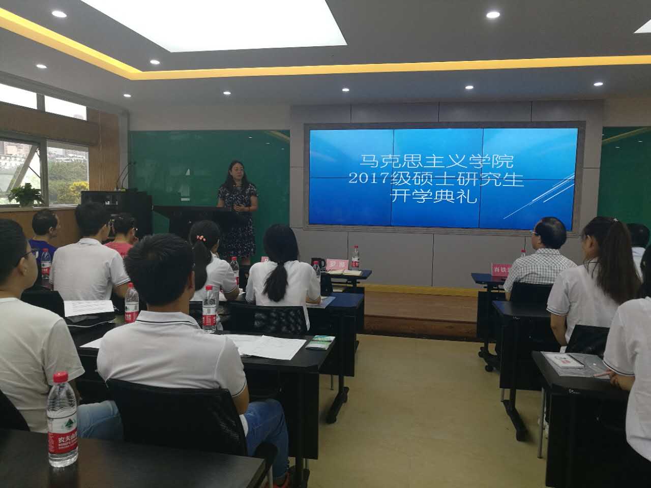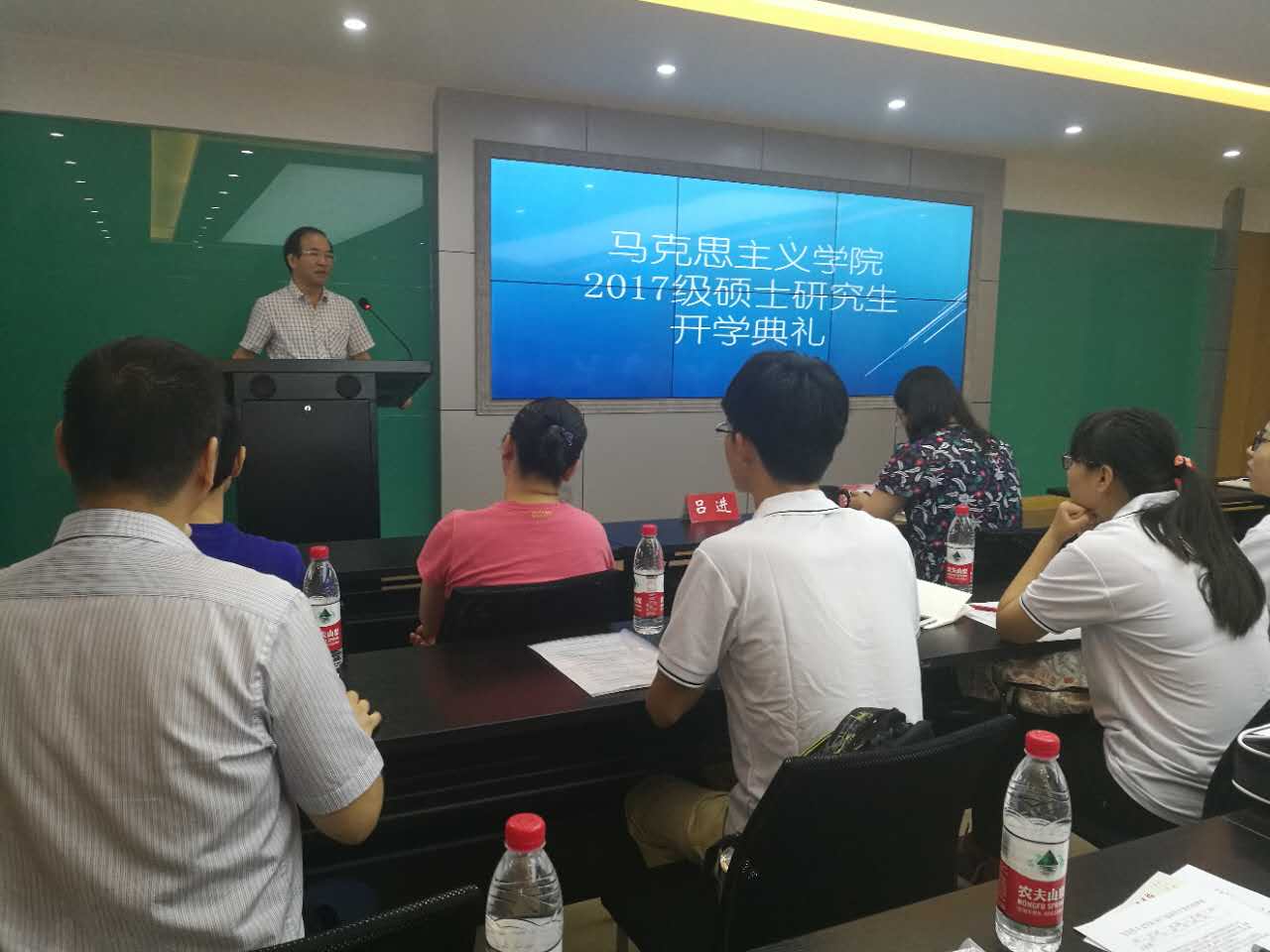 随后,学院各位领导陆续讲话。罗滌谈到,学生研究生三年要学会成长,要无愧于三年的学习生活,要学会规划自己的学习和生活。罗书记表示每个马院的学生都是马院整体形象的代表,因此,她要求新生要有过硬的政治信仰,要有责任,有担当,有形象,她希望同学们要想清楚自己的人生目标,争取以后成为社会栋梁。