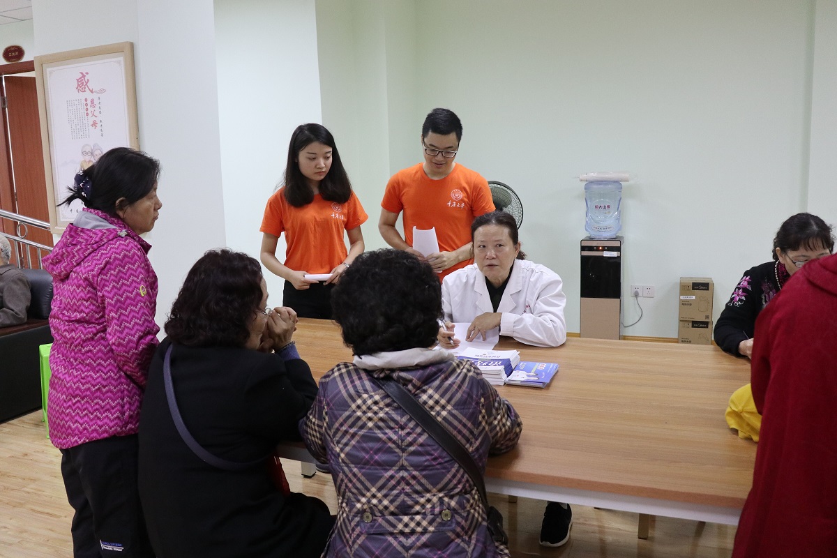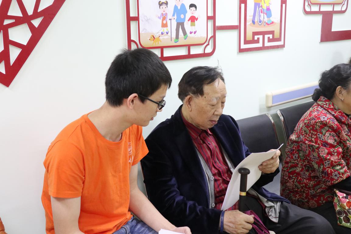 一首“高举党的伟大旗帜——歌颂祖国”的深情朗诵拉开了志愿者活动的帷幕,朗诵结束后,各位老人报以热烈的掌声和慈祥的笑容。随后,同学们各司其职、有条不紊地开展起志愿服务工作:有的负责现场引导、秩序维持等工作;有的与老人们谈天,并介绍党的十九大召开情况;有的协助医生,帮助老人体检;有的帮助老人整理衣物。在同学们的热情宣讲下,老人们谈心勃勃、意犹未尽,有的还穿上美丽的衣服,在我们的镜头下,留下了美好的回忆。