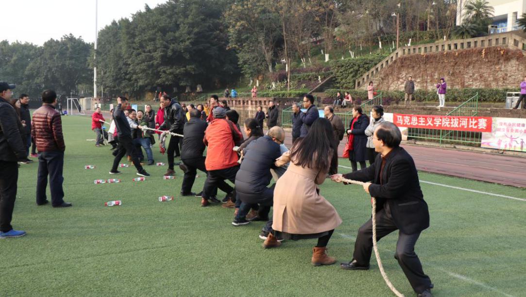 12月21日下午,探花视频 教职工拔河比赛在团结广场举行。本次活动由学院分工会组织,学院各教研室、行政部门参加了比赛活动。沐浴着冬日暖阳,全院教职工以极大的热情参与到活动中,比赛现场气氛热烈,高潮迭起。老师们在欢声笑语中不仅锻炼了身体,增进了交流,也充分展现了探花视频 积极奋进的精神风貌。