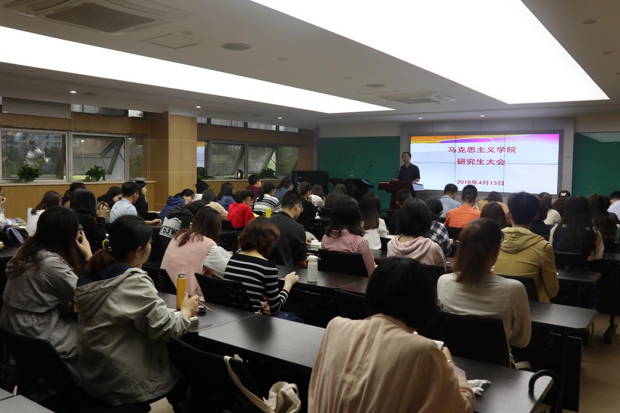 在408室召开全体研究生大会,学院党委副书记、纪委书记温健琳、王玉琴老师、杨华老师参加会议。