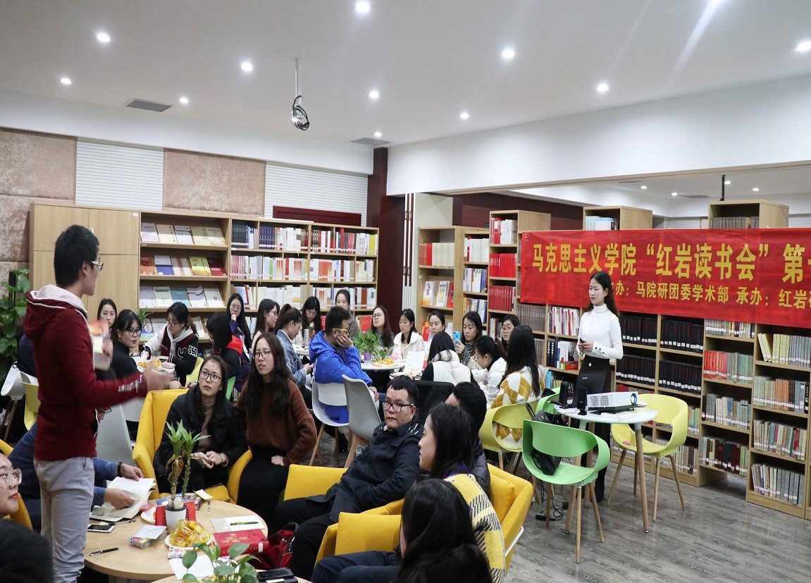 的兰佩琳同学代表《红岩》阅读小组,向大家分享了江姐等革命烈士坚持真理、追求自由的革命意志,并提出问题与大家讨论交流,精心准备的两个问题激发了同学们参与活动的积极性,将读书会活动推向了高潮。来自动力学院的刘啟文同学说:“看到大家观看纪录片时的目不转睛,分享读书心得时的慷慨激昂,朗诵经典段落时的真情流露,制作小组读书笔记时的欢快愉悦,觉得马院这个读书会活动办得有意思,是一个既能读书又能交友的好活动,希望以后还能继续参加。”