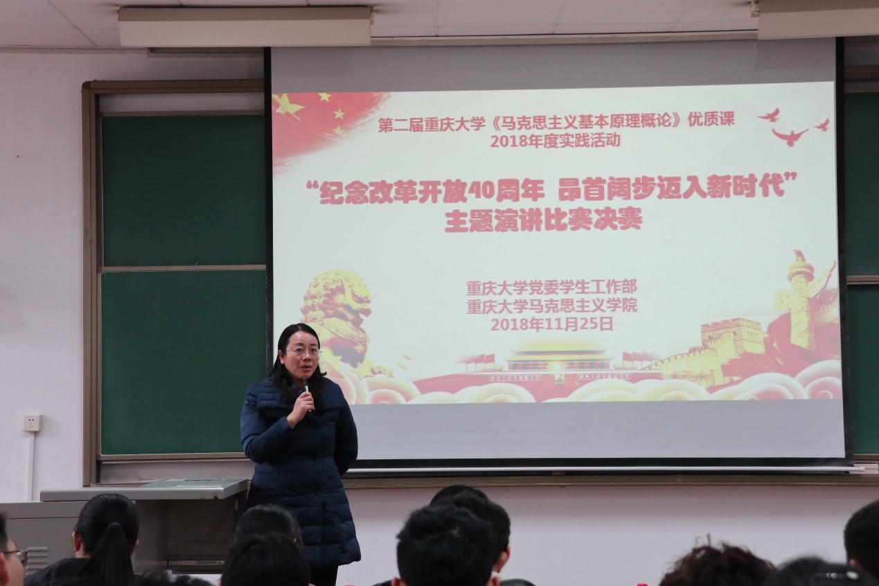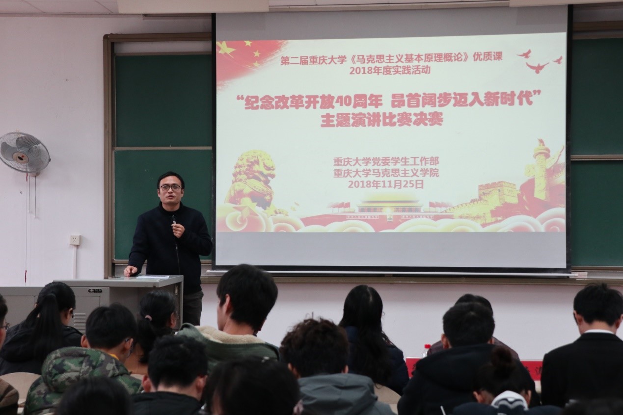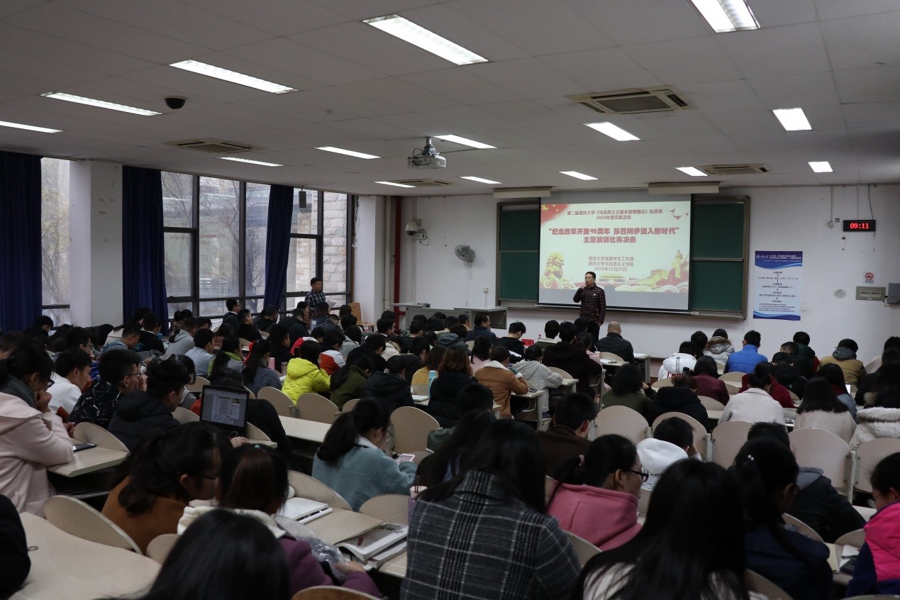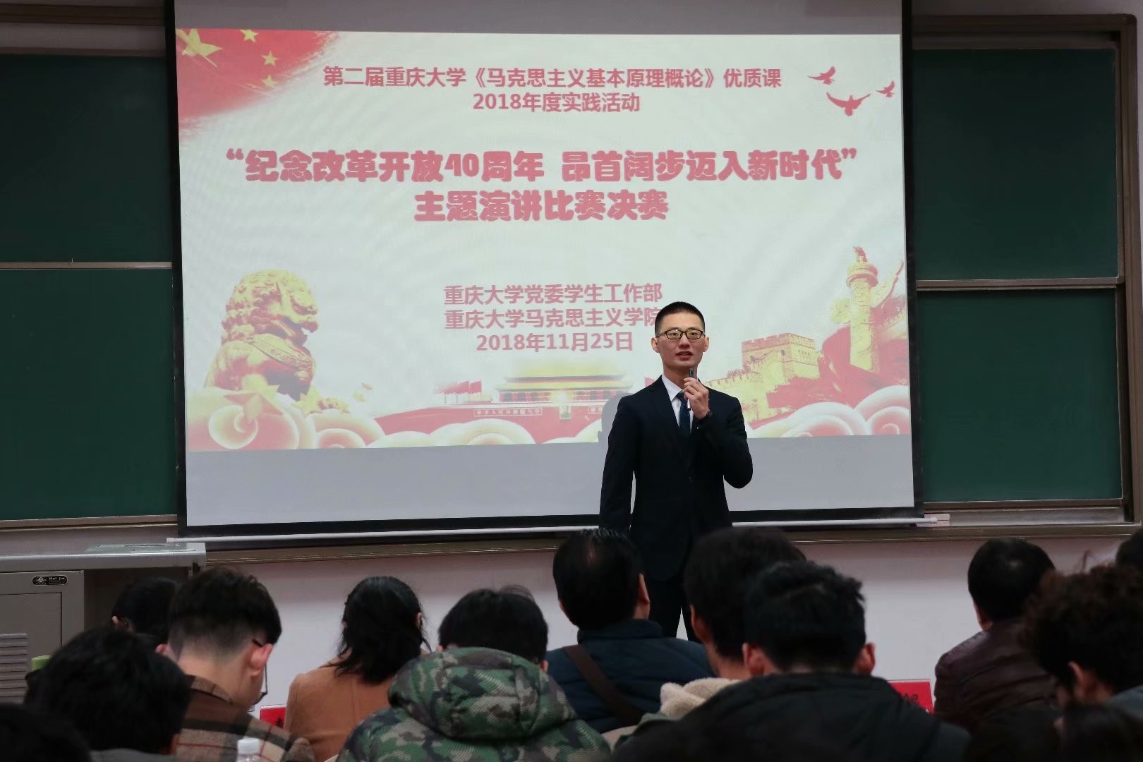 联合举办“纪念改革开放40周年 昂首阔步迈入新时代”主题演讲比赛决赛在虎溪校区举行。本次参加决赛的18名选手由2018-2019学年度第一学期《马克思主义基本原理概论》课各教学班开展的以“纪念改革开放40周年 昂首阔步迈入新时代”为主题的演讲比赛初赛产生。探花视频