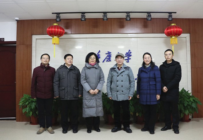 党委书记周旬在学校一大楼会议室会见了张雷声教授并合影留念。