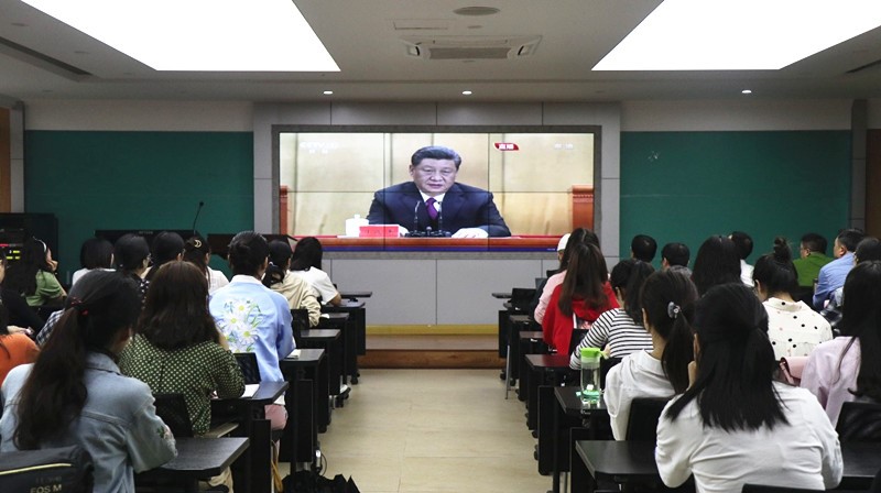 组织师生在学院第一会议室观看 “纪念五四运动100周年大会”现场直播。探花视频