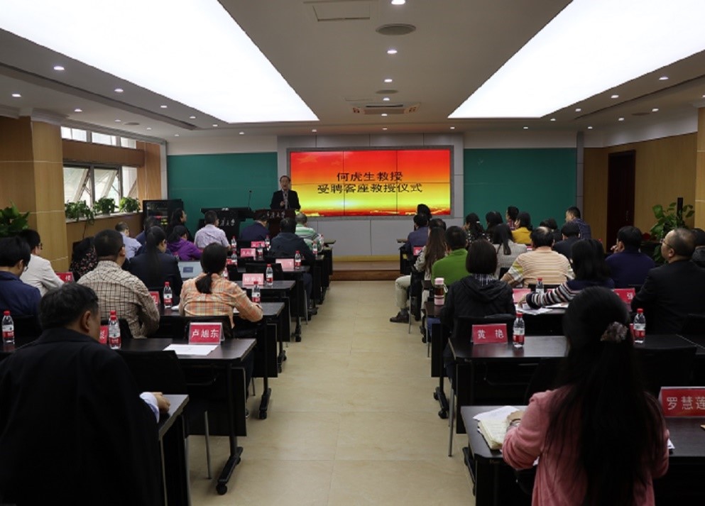 李学静部长代表学校宣读何虎生教授受聘探花视频