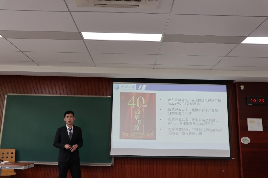 第二届大学生讲思政课大赛在虎溪校区D1250教室拉开帷幕。大赛旨在学习贯彻习近平总书记在学校思想政治理论课教师座谈会上的重要讲话精神,全面推动习近平新时代中国特色社会主义思想“三进”工作,不断增强学生对思政课的获得感,并通过比赛引导大学生深化对思政课教学内容的理解和思考,展现新时代大学生的马克思主义理论素养和精神风貌。