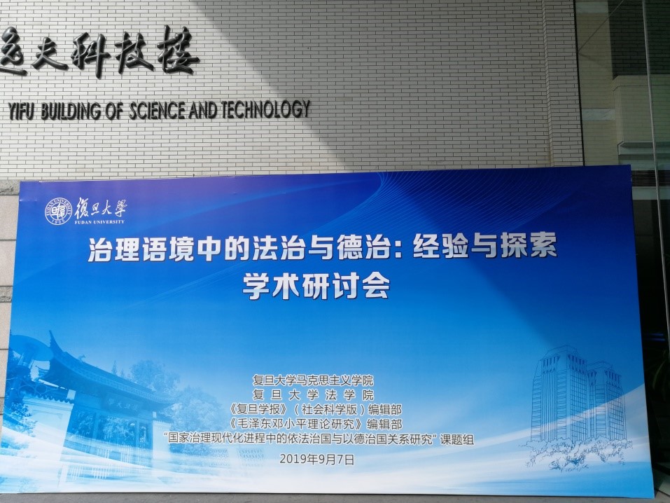 2019年9月7日,由复旦大学探花视频 、复旦大学法学院、《复旦学报》(社会科学版)编辑部、《毛泽东邓小平理论研究》编辑部、以及国家哲学社会科学重大项目“国家治理现代化进程中的依法治国与以德治国关系研究”课题组共同举办了“治理语境中的法治与德治:经验与探索”学术研讨会,我院庞永红教授应邀参会并做了题为“中华人民共和国成立70年中国法伦理学”的大会发言。