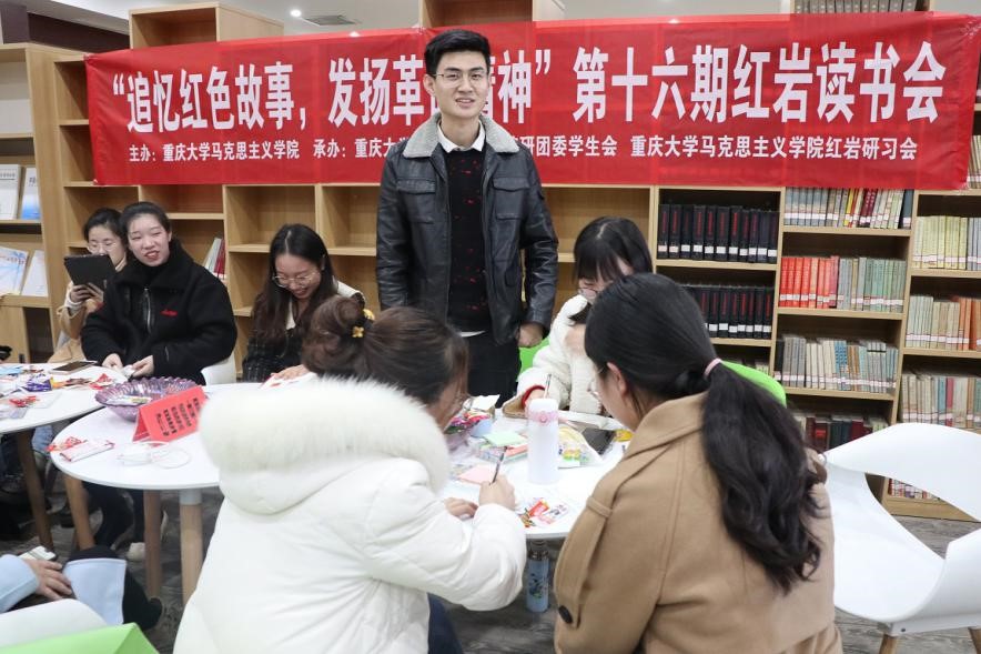 的同学参加了此次分享会。分享会主要从以书会友--书友交流心得、侧耳倾听--分享所感所悟、书声琅琅--诵读经典诗词、红色重庆--现场知识竞答四个环节进行分享和互动。