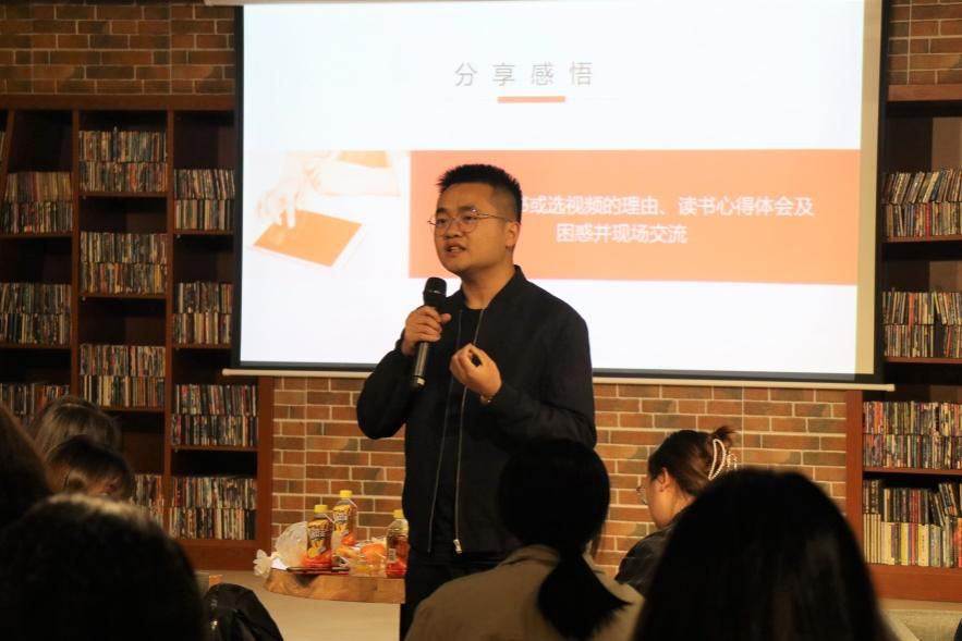 刘奕岑同学主持。来自经济与工商管理学院、环境与生态学院、能源与动力工程学院等八个学院的同学参加了此次分享会。分享会主要从观奋斗中国——观看影视作品,悟发展艰辛——交流学习心得,话时代新篇——现场讨论抢答三个环节进行分享和互动。