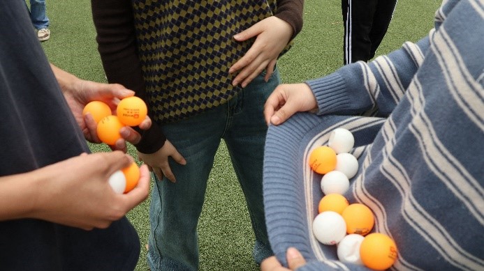 在主持人介绍完活动流程及规则之后,各位同学进行随机抽签分组,抽到带有相同符号贴纸的同学在之后的游戏中自动分为一组,每轮游戏各组根据名次排行,获得不同累计积分。在主持人的指导下,四组先后进行了“气球接力”“七手八脚”“仙人指路”“呼啦圈过山车”四个游戏。同学们团结一心、配合默契、奋勇向前,沉浸在欢乐的游戏活动之中。