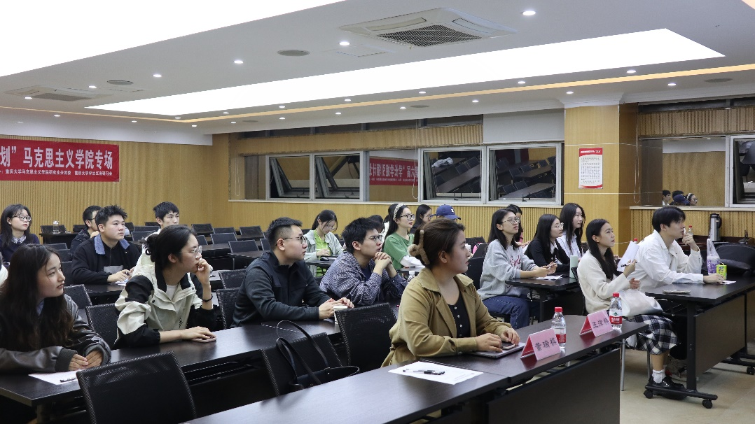 在408室举办第六届“学长学姐引领计划”之“心有榜样、学有模范”活动。本次活动邀请到我院2023级博士研究生王津桥、2021级硕士研究生董瑞祺分享学术科研及社会实践经验,活动由2023级硕士研究生严雪主持,各年级研究生积极参与。