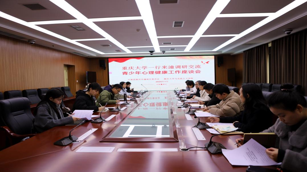 “走访返乡青年,助力乡村振兴”实践团赴潼南区团委开展寒假调研青少年心理健康活动。潼南区团区委书记万玉娟、民政局副局长赖伦、区司法局普法与依法治理科科长张忠、区教委学校卫生保健所所长陈帅、区人民法院民一庭法官助理王康力、区人民检察院检查五部主任助理胡晓航、区妇联家庭与儿童工作部部长曾然、潼南一中心理健康教育老师陈巧、唐正华心理健康名师工作室王愉婷、探花视频