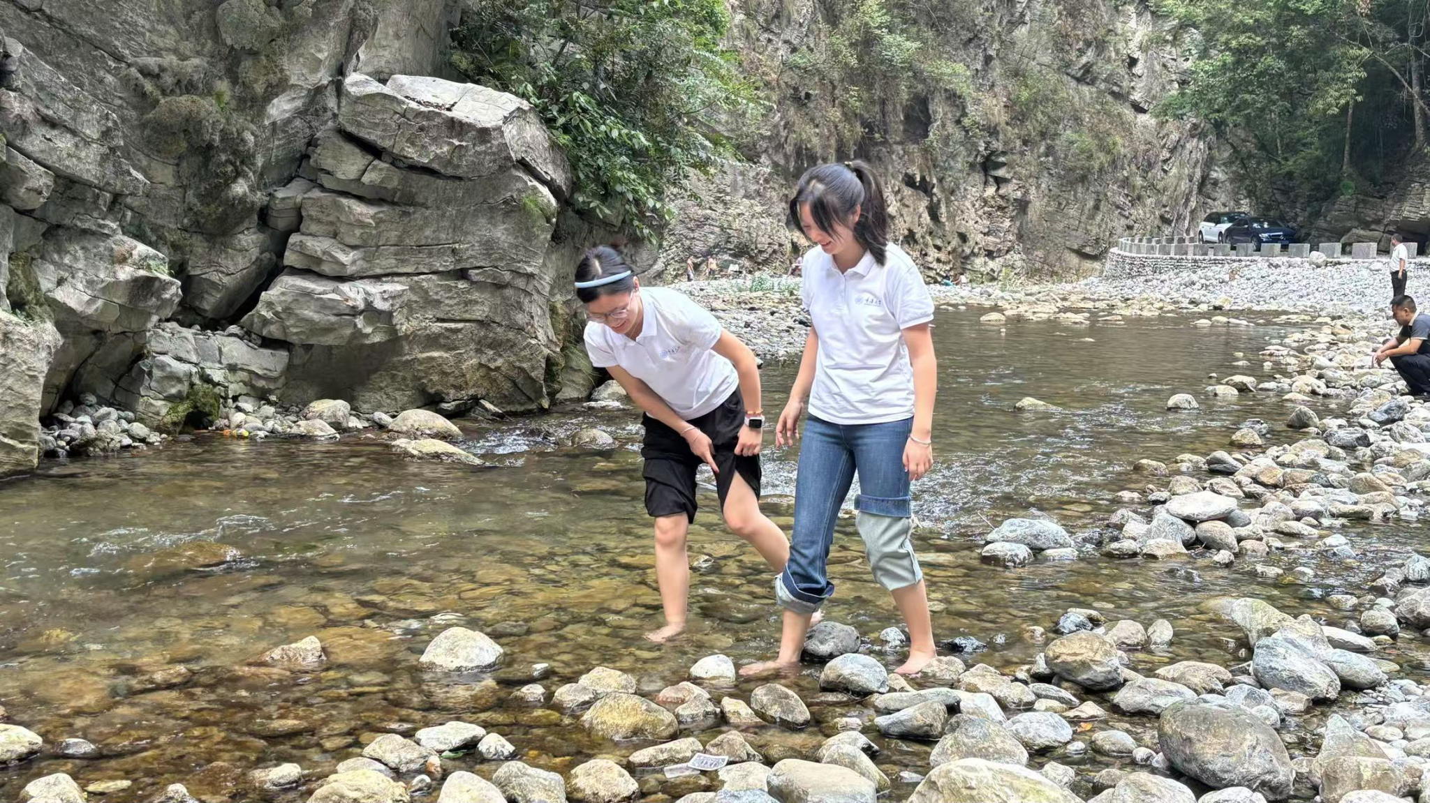 对今日下庄而言,天堑曾带来隔绝的苦难,却也馈赠了丰饶的河谷。四面环山的下庄村巧妙地平衡着河谷生态保护和开发之间的关系。成员们前往下庄后溪河河谷时,岸边露营的人们正伴着晚风闲谈,孩童赤足踩过浅滩,笑声惊起水鸟;峭壁间藏着的溶洞更引众人驻足,钟乳石在光影里流转着亿万年的印记。掬一捧河水,凉意混着草木清香漫过指尖,澄澈里映照着人与自然的相拥。曾经困住脚步的天堑,成了守护净土的屏障;当坚韧凿通了出路,这份原生态的美好,便成了下庄最珍贵的振兴家底。