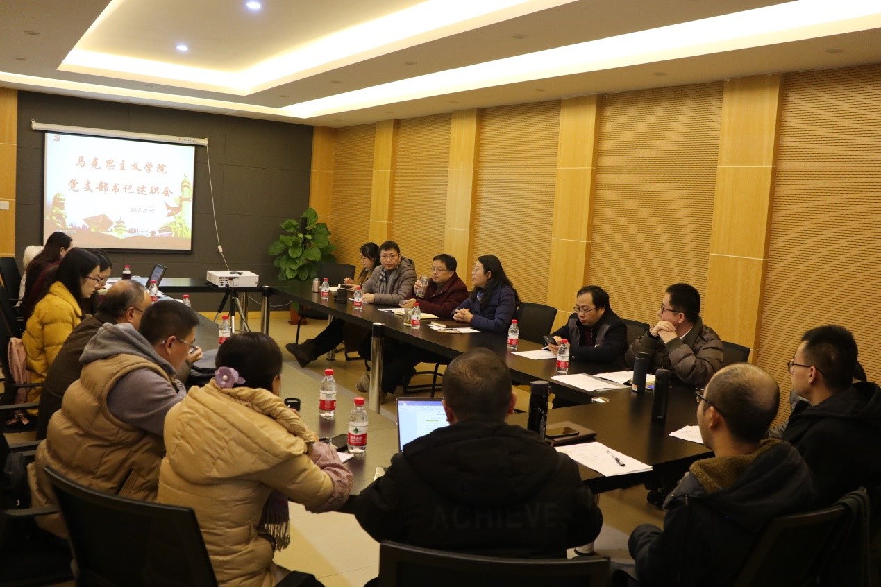 2018年12月19日上午,探花视频 在学院414室召开了2018年党支部书记述职评议会。学院党委书记罗滌、副院长徐鲲、党委委员吕进、党委委员李丽昆及各党支部书记、支委参加了述职会。