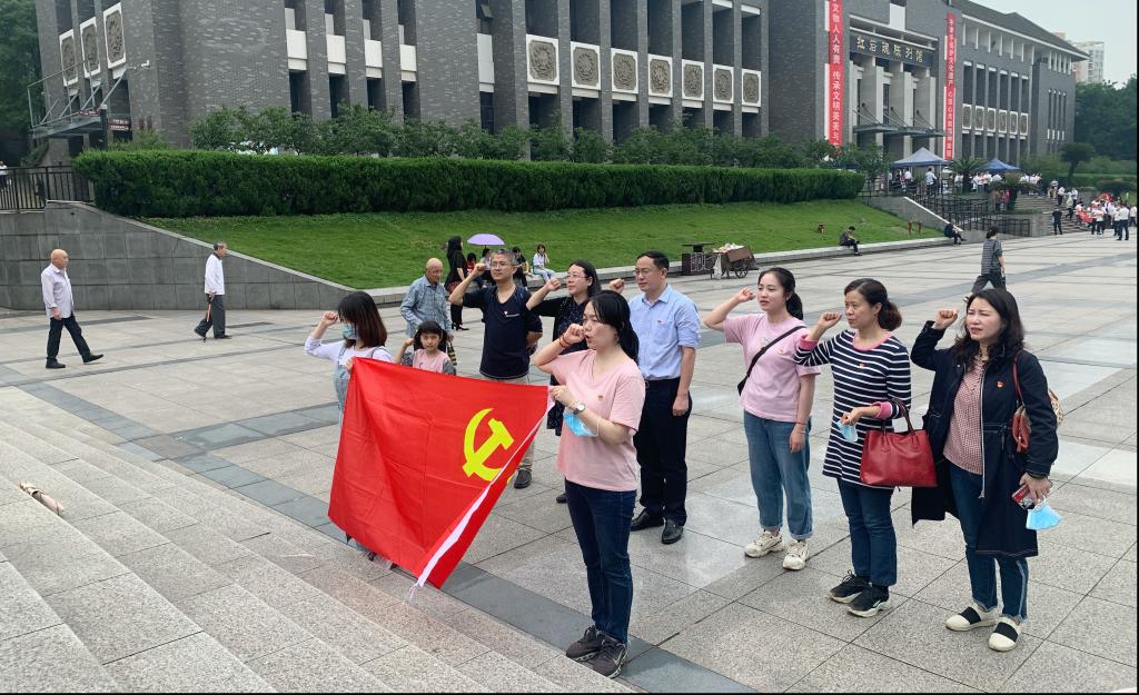 最后,在支部书记李丽昆同志的带领下,支部党员在红岩魂广场重温入党誓词,以誓言告慰革命先烈。