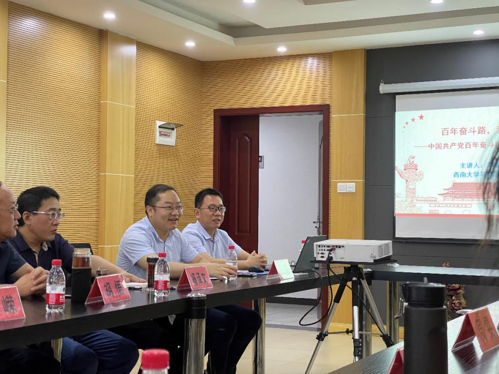 主题党日活动开始后,邓群刚教授围绕“百年奋斗路,激励新征程”,从中国共产党百年奋斗的主线、中国共产党的百年奋斗历史及其辉煌成就、中国共产党百年奋斗的经验启示三个方面逐一展开,阐发回溯党的百年奋斗历程、把握百年奋斗的主线、总结百年奋斗的经验启示,对于促使全党同志在党史学习教育中做到学史明理、学史增信、学史崇德、学史力行,学党史、悟思想、办实事、开新局,以昂扬姿态奋力开启全面建设社会主义现代化国家新征程,以优异成绩迎接建党一百周年具有重要的现实意义。