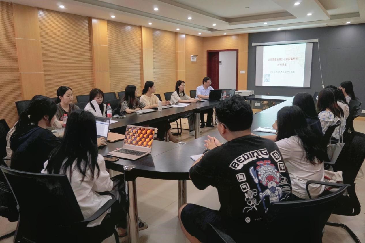 吕进副院长在学院414会议室为研究生四支部作题为“以高质量发展促进共同富裕的时代意义”的专题党课。本次党课由支部书记周作玉主持,支部全体党员参加。