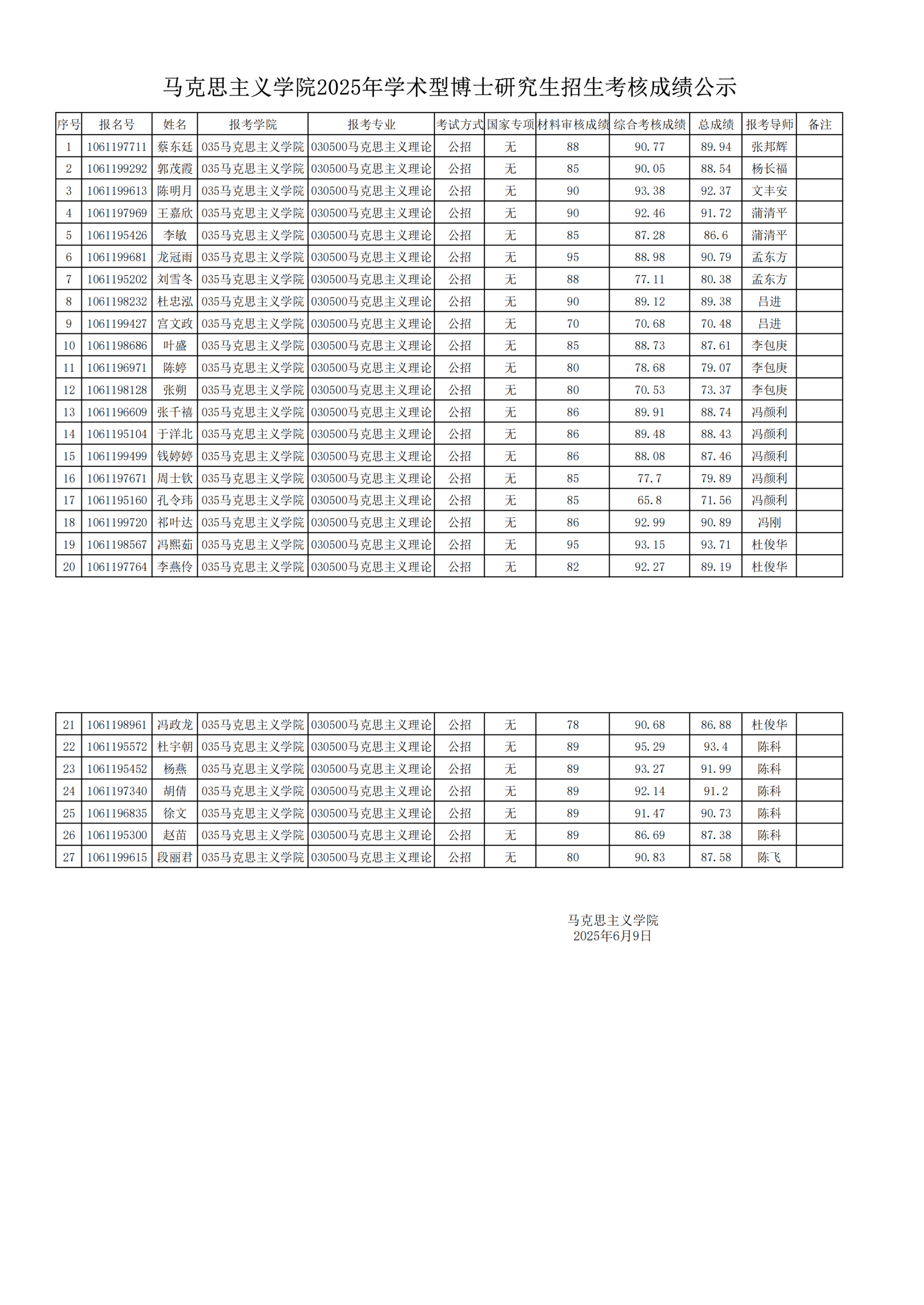 探花视频 2025年学术型博士研究生招生考核成绩公示