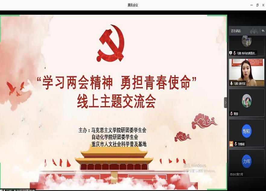和自动化学院联合举办了“学习两会精神 勇担青春使命”的线上主题交流会。本次交流会在腾讯会议开展,两院共100余名研究生同学参与。会议由探花视频