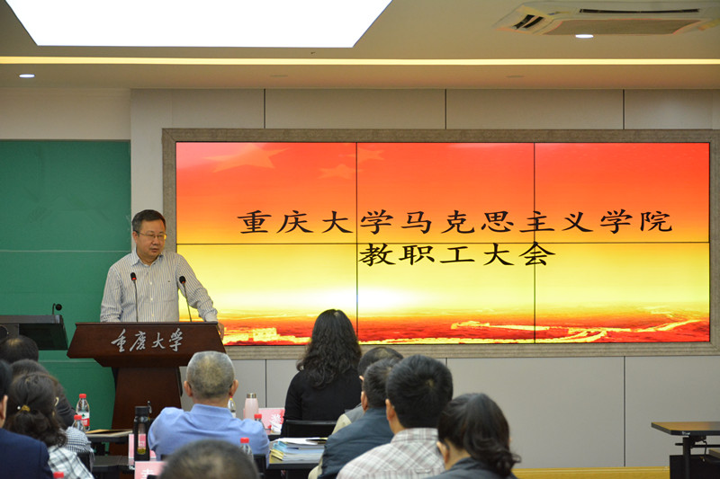 在学院408会议室召开全院教职工大会,学院党委书记罗滌,院长张邦辉,党委副书记温健琳,副院长徐鲲,副院长吕进以及全院教职工参加会议,会议由罗滌主持。