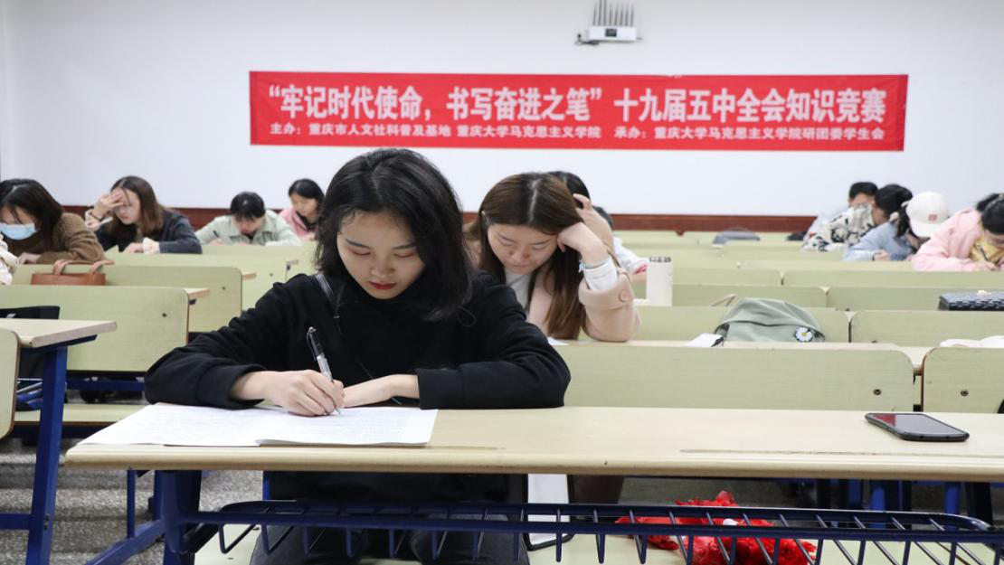 主办的“牢记时代使命,书写奋进之笔”十九届五中全会知识竞赛在A区五教208教室顺利举行。学院共计40余名同学参与此次知识竞赛。