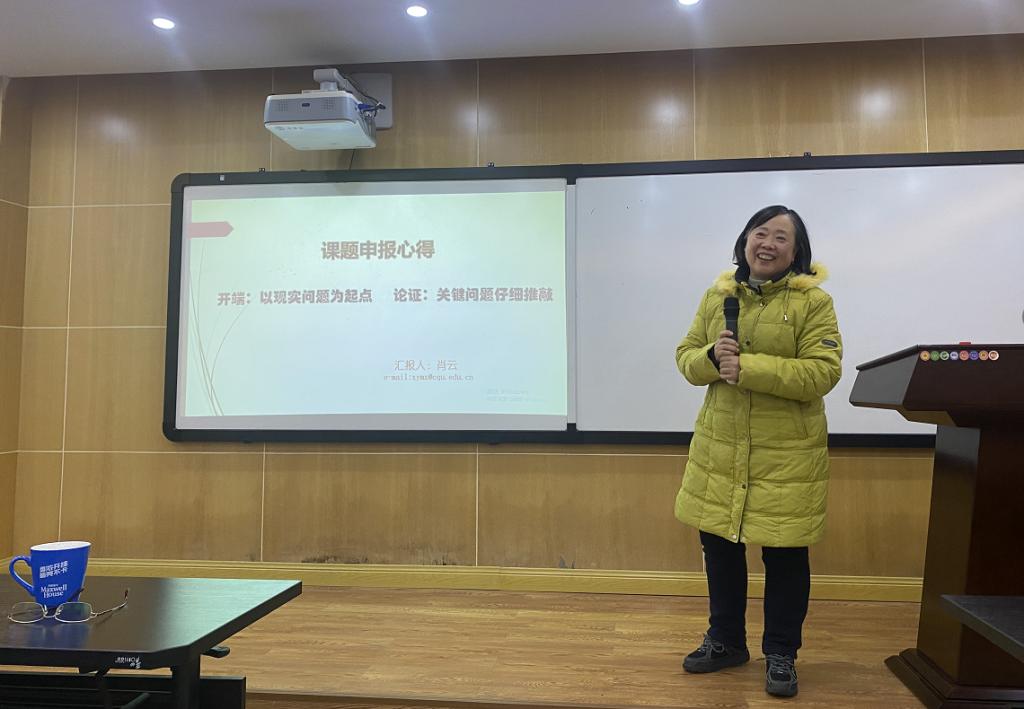 肖云教授结合自身项目申报经历,以“开端:以现实问题为起点,论证:关键问题仔细推敲”为题,与大家分享了项目申报、完成、结项等不同阶段的经验,肖教授表示自己申报的选题大多来源于自己的生活以及教学经验,鼓励大家要关注生活实践,从中找选题,同时也要关注国家政策方向,两者结合提高申报的成功率。肖教授通过不同的例子进行了经验分享,包括学习SPSS软件、通过读书找寻理论来源、图表式填报等形式创新。最后,肖教授勉励大家要发扬艰苦乐观精神,只要坚持,总会成功。