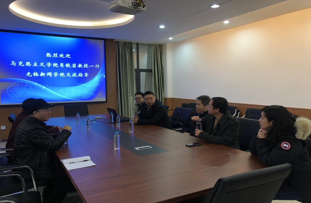 副院长徐鲲教授一行赴我校新闻学院调研,与新闻学院党委副书记郭秀荣、副院长龙伟、刘海明教授、曾润喜教授、郜亚楠老师等在新闻学院三楼会议室进行座谈交流。