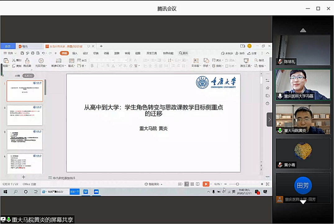 2020.12.11日上午,重庆市高校思想政治理论课手拉手行动(第一组)大中小学“手拉手”同备一堂思政课研讨会在“腾讯会议”上成功举办。此次研讨会由重庆医科大学探花视频