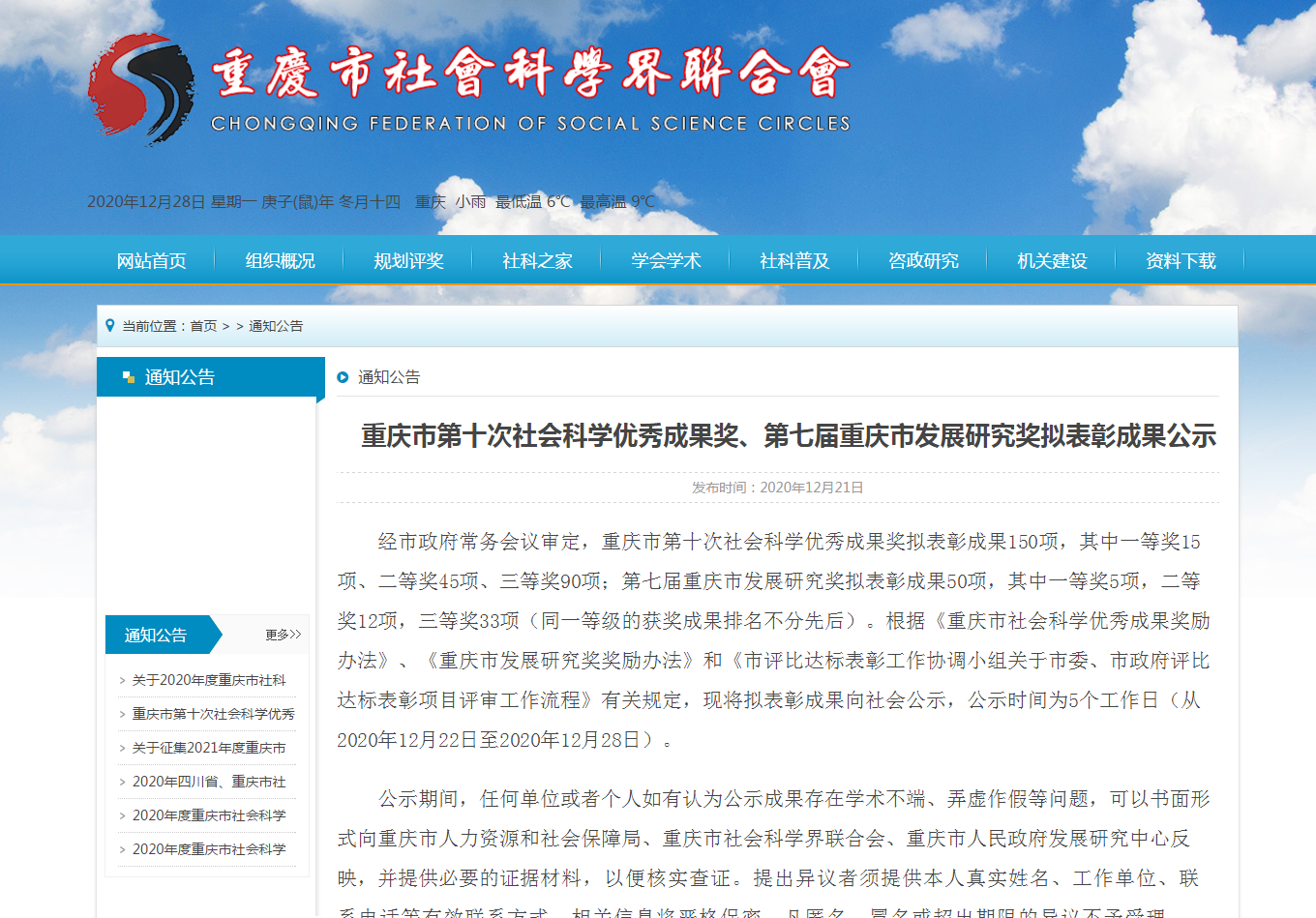 2020年12月21日,重庆市第十次社会科学优秀成果奖、第七届重庆市发展研究奖拟表彰成果公示,我院刘洪彪、杜俊华、庞永红、吕进、蒲清平五位老师获奖。获奖信息如下: