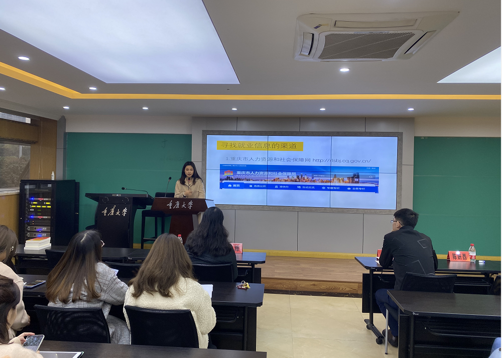 2021年3月11日下午,学院在408教室举办“师兄师姐去哪儿”座谈会,学院邀请陈妍西、何丽玲、尚杨、蒋弦四位毕业生向在校同学分享就业、求学等经验,学院党委书记罗滌,党委副书记温健琳参加座谈。