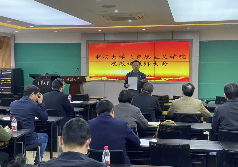 思政课教师大会,学院党委书记罗滌,院长张邦辉,副院长徐鲲,校内部分思政课教师参加会议,会议由张邦辉院长主持。
