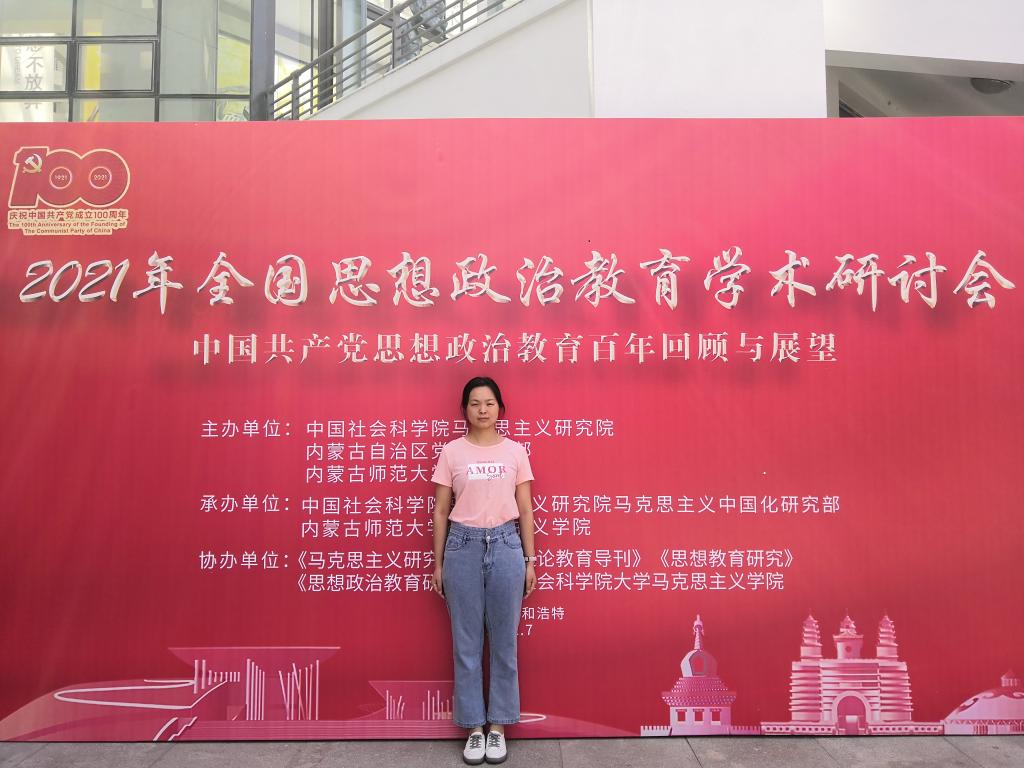 共同协办的“2021年全国思想政治教育学术研讨会”在内蒙古自治区呼和浩特市举办。本次研讨会主题为“中国共产党思想政治教育百年回顾与展望”,来自全国各地的党史研究机构、高等院校、科研院所的300余名专家学者参加了此次研讨会。我院2019级硕士研究生完瑞红应邀参加,在何跃教授指导下,完瑞红撰写的《建党百年青年理想信念教育的理论依据、实践原则和基本经验》一文,经9位专家评审,入选本次学术研讨会。