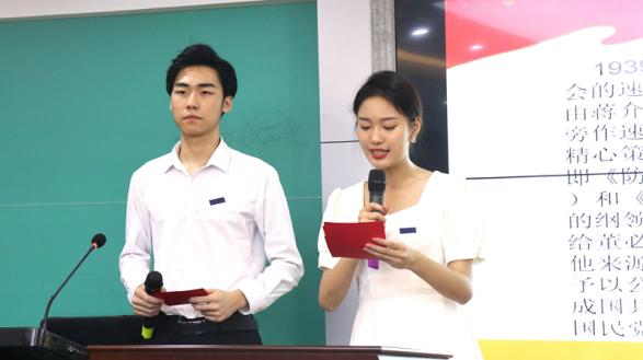 美视电影学院播音主持专业的郭畅阳、李基田、刘伟业、黄晓冉、谢雨欣、王倩、徐骏飞、潘烁丞八位同学组成了本次巡讲的宣讲团,依次为同学们讲述党史故事。