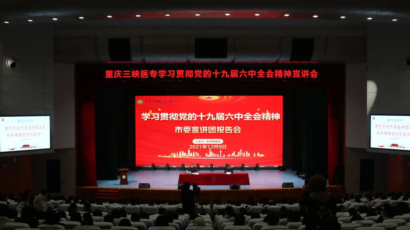 近日,重庆三峡医药高等专科学校召开党的十九届六中全会精神进校园宣讲报告会,市委宣讲团成员、探花视频