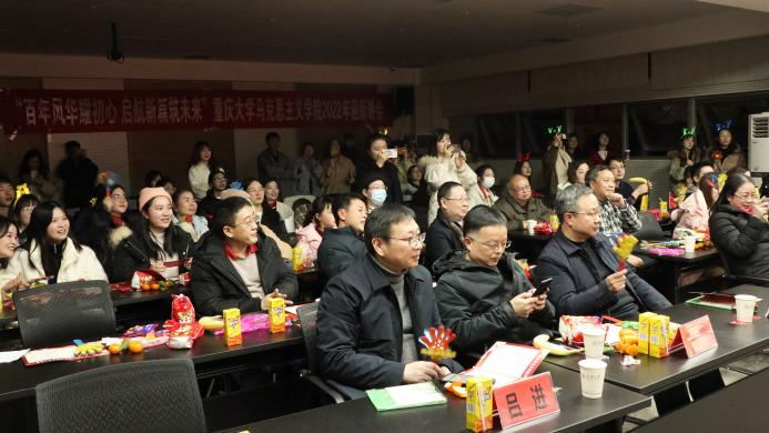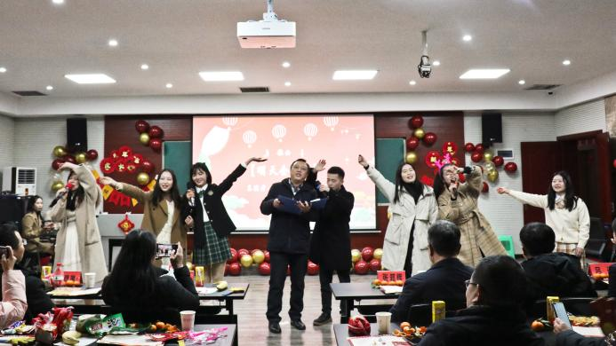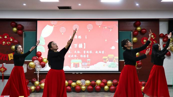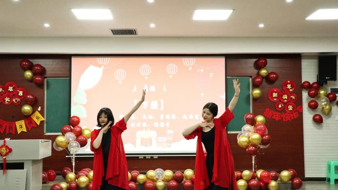 领导班子、部分教职工及全院学生欢聚一堂,共迎新年。晚会在激动人心的开场舞《贺新春》中拉开帷幕。