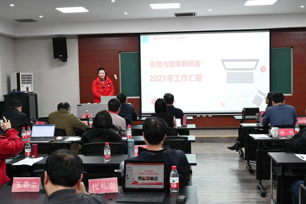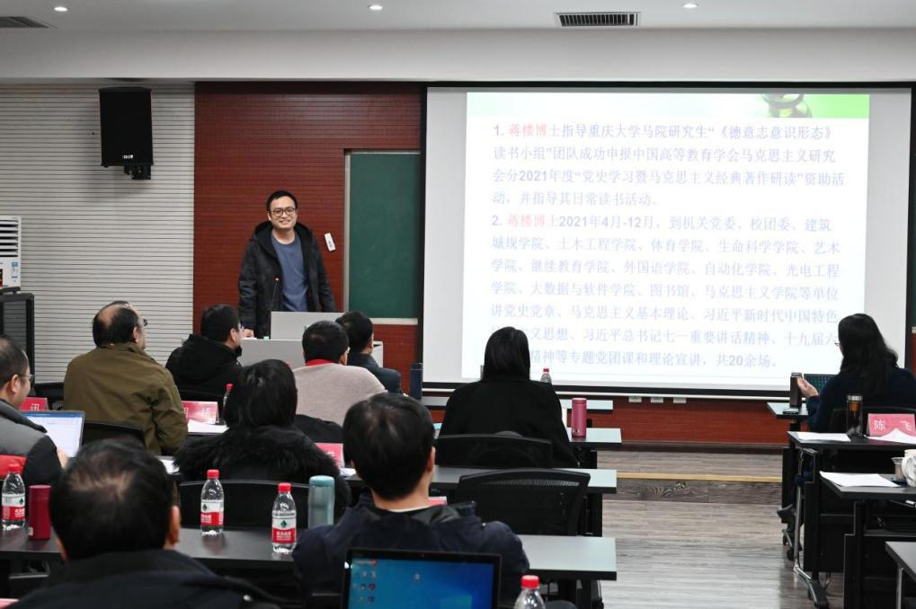 何兵、陈飞、王小凤、代礼忠、谌祥勇、张荆六位老师分别代表学院研究生思想政治理论课教研室、马克思主义基本原理教研室、思想道德与法治教研室、马克思主义中国化教研室、中国近现代史纲要教研室、形势与政策教研室进行述职汇报。