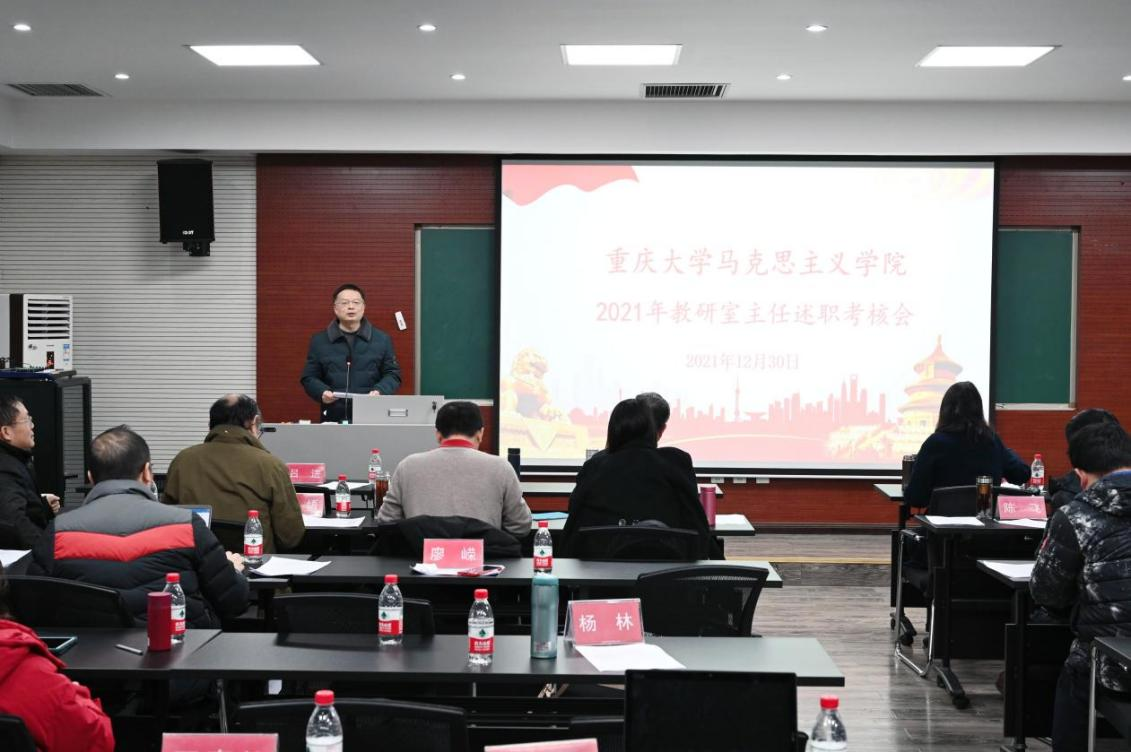 在406教室开展2021年教研室主任述职考核会,学院党委书记罗滌,院长张邦辉,副院长徐鲲、吕进,副书记温健琳出席会议,学院全体教职工参会,徐鲲主持考核会。
