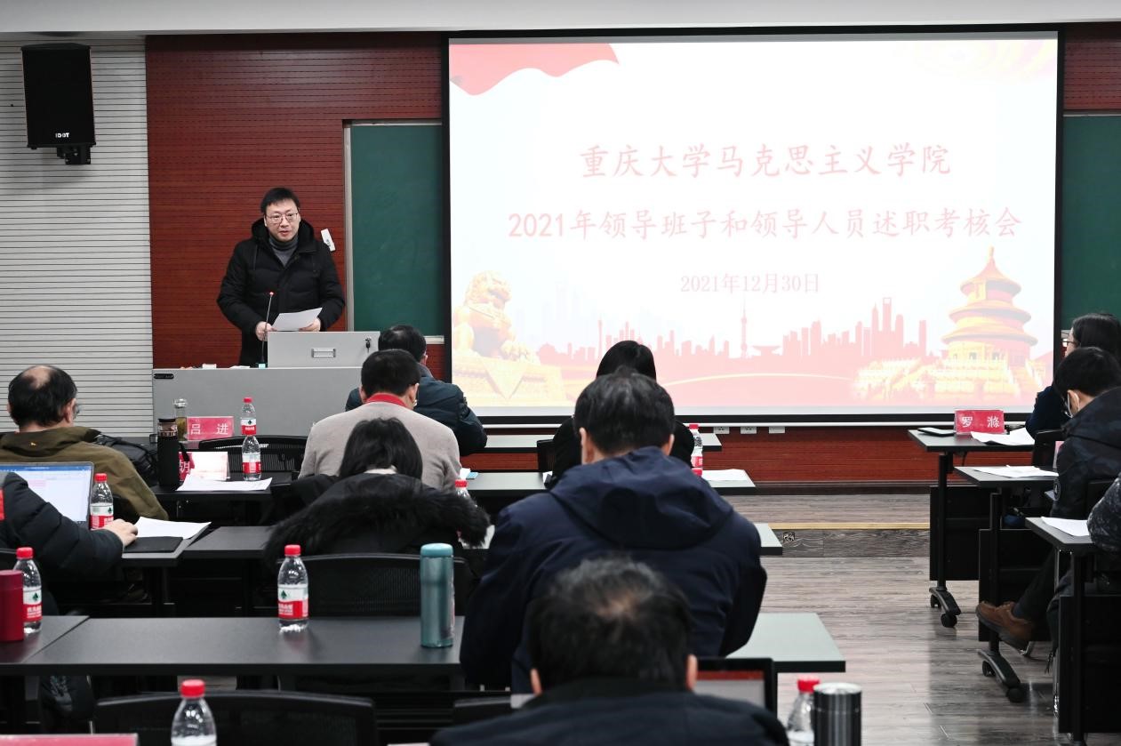 党委书记罗滌首先代表学院领导班子进行述职。罗书记在述职中表示,一年来学院强化党建引领,促进学院发展,积极开展巡视巡察工作,积极进行党史学习教育,学院思想政治工作取得新成效,基层党建工作取得新进展,学科建设取得重大突破,教学质量稳步提升。罗书记表示,学院在2021年里取得的成绩离不开全院师生的辛勤努力,离不开各岗位教职工的辛勤努力,她表示在新的一年里,马院全体师生仍要秉承艰苦奋斗作风,凝神聚力,奋力前行,推动学院更好发展。