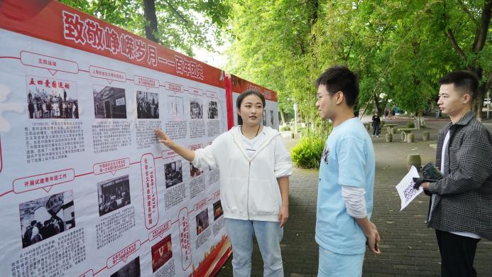 知识竞赛与主题展览同时展开,竞赛内容围绕百年团史、“七一”重要讲话精神、党的十九届六中全会精神等五大主题,既注重史实又结合时政,吸引了美视电影学院、通信学院、机械学院等学院的上百名同学参加,在工作人员的引导和介绍下,通过扫描活动二维码参与答题,并根据答题分数赢得了丰富的奖品。在答题过程中,许多同学不禁感叹“在近代一百年的历程中,我国发生了如此翻天覆地的变化,生于和平年代的我更应该为实现中华民族伟大复兴贡献自己的一份力量。”
