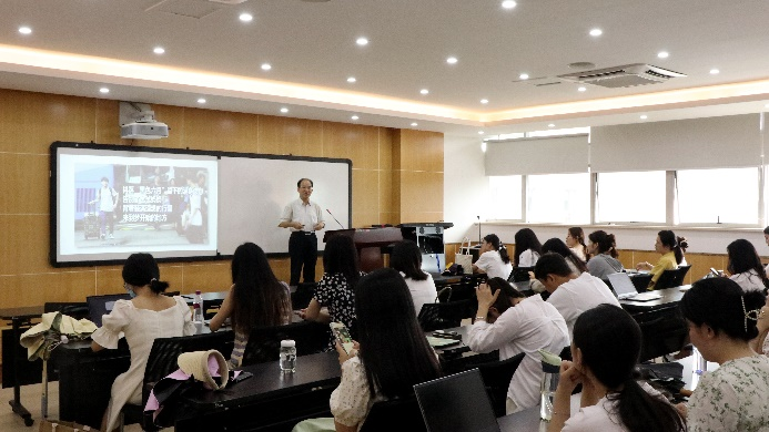 肖铁岩从新时代具有什么样的新特征入题,他讲到,新时代是网络时代,网络与我们每个人都息息相关,在新时代实现新发展一定要抓住网络这一关键点;接下来,肖铁岩通过一系列的故事带领毕业生党员回顾了建国七十余年来的昨日今朝。一是通过五十年前的开学行囊和如今新生报到的行囊做对比,从行囊看时代变化,新一代学子呈现出的诸多新特征中个性化是这一代青年学子的最主要特征;二是通过图片、视频等形式向同学们展示了探花视频