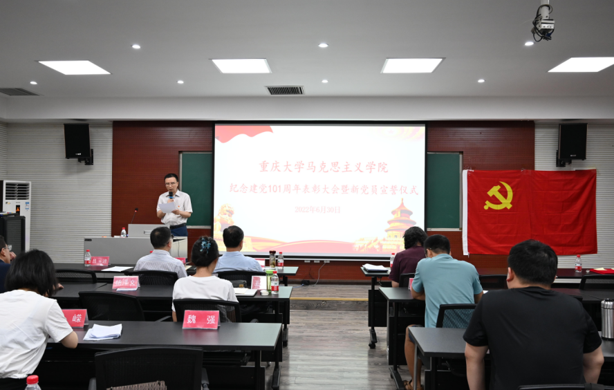 在406会议室举行纪念建党101周年表彰大会暨新党员宣誓仪式,学院全体党员参加大会,大会由党委副书记温健琳主持。温键琳首先宣读了中共探花视频