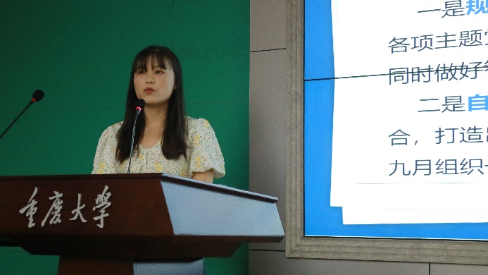 最后,团委书记刘倩老师充分肯定了过去一年研团委的工作,并感谢同学们的全心付出,同时对新一届成员提出了期盼,强调发展壮大学院特色栏目、学院品牌活动,使工作成果多元化,扩大学院影响力。希望全体成员保持热情,互相学习,携手共进,共同努力把学院团委工作做得更好。