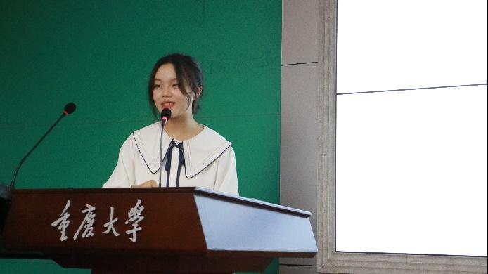 紧接着,李晶晶同学发言。她讲到,学生干部是协助者,也是服务者,重在服务学生。作为学生干部应恪守本职,以高度的责任感和服务精神,做好学生工作,以获得同学们的一致认可为目标。希望在接下来的工作中与老师同学们通力协作,共创佳绩。