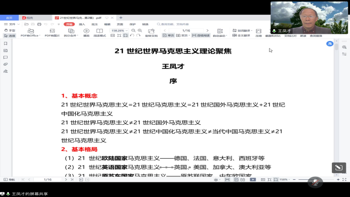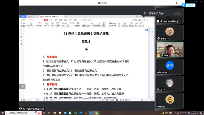 于腾讯会议举办了第33期红岩讲座,特邀复旦大学王凤才教授作题为“21世纪世界马克思主义理论聚焦”的专题讲座。我院师生积极参加,讲座由副院长吕进主持。