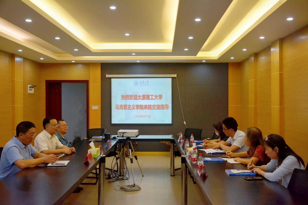 徐鲲副院长对太原理工大学各位老师的到来表示热烈欢迎,并介绍了我院在教学科研、人才队伍、课程设置等方面的情况。胡伟栋主任介绍了太原理工大学马院的基本情况。会议就《思想道德与法治》教学、实践教学、教学改革、学术研究及教研室活动等内容展开深入交流。此次交流加强了我院与太原理工大学马院的交流与合作,互相学习借鉴了先进的教学科研经验。