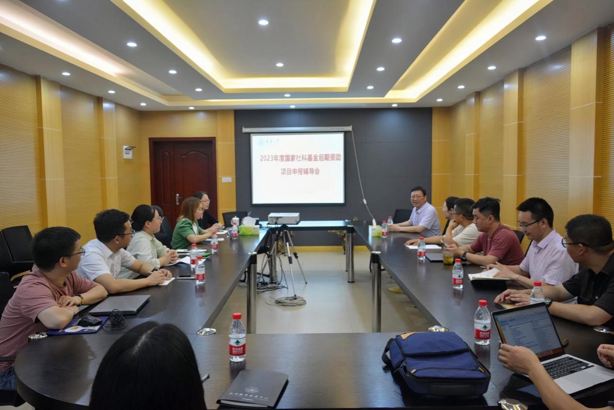 在414会议室召开2023年度国家社科基金后期资助项目申报辅导会,学院邀请中国社会科学出版社国际合作与出版部主任夏侠博士对项目申报进行指导。学院科研分管副院长吕进及部分教师参加会议。