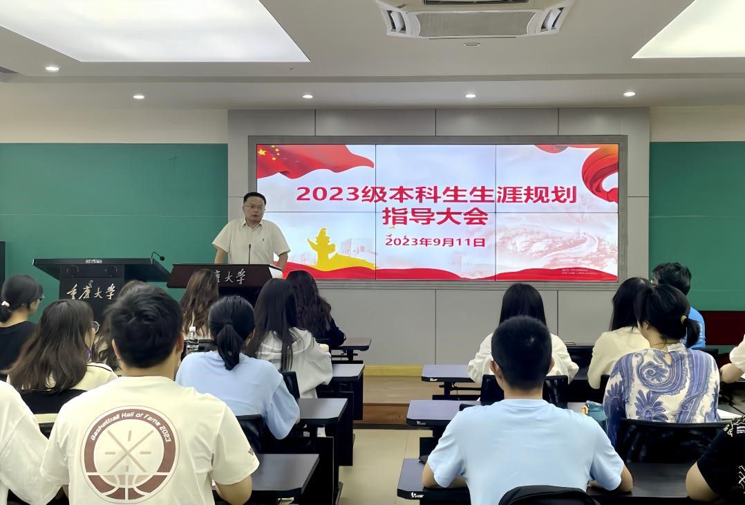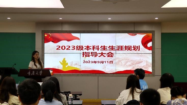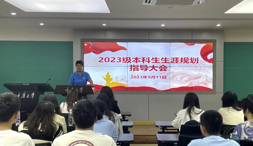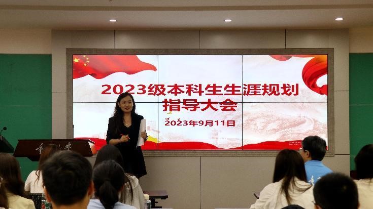 于2023年9月11日在408会议室召开2023级本科生生涯规划指导大会,学院副院长徐鲲、团委书记刘倩、兼职辅导员廖钰及全体本科生参加了此次大会,会议由党委副书记袁利主持。