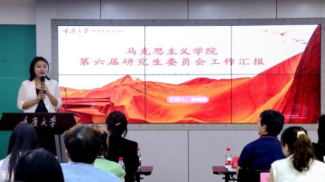 第六届委员会代表董瑞琪进行学年工作总结。她从组织建设、学术活动、文体活动、党团活动、志愿活动、宣讲活动六个方面向同学们总结了过去一年研团委学生会的工作成果,并介绍了过去一年所获得的荣誉,勉励新一届研究生委员不忘初心,奋勇前行,再创佳绩。